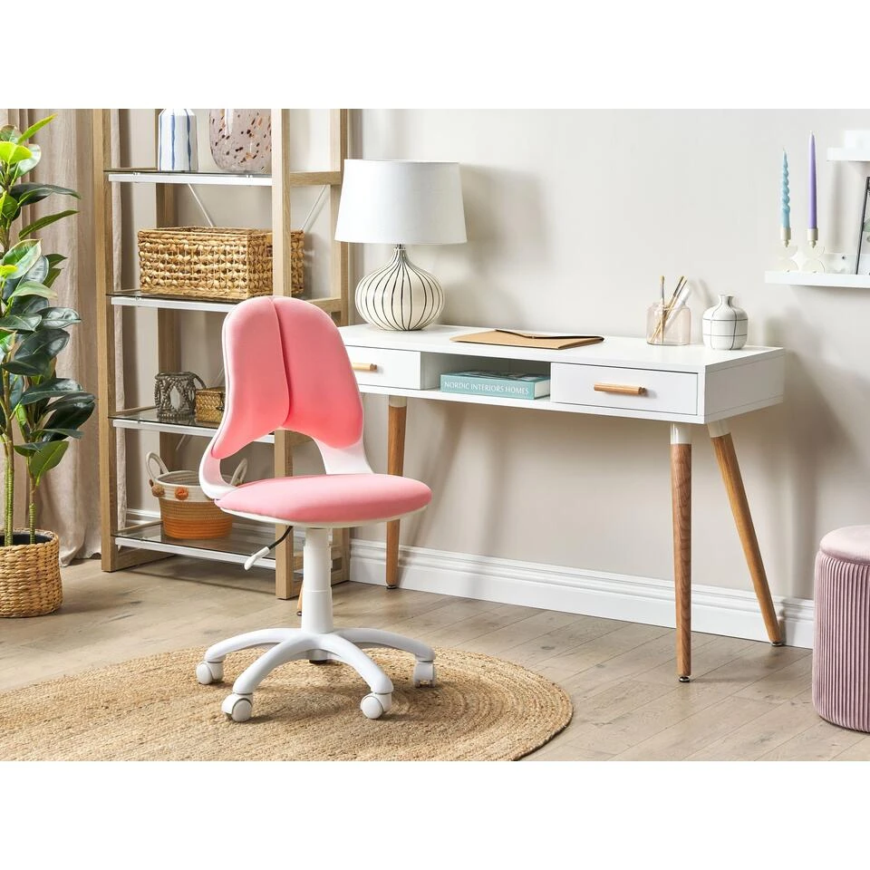 Bureaustoel voor kinderen. Creëer een comfortabele ruimte om te leren, lezen of tekenen met deze mooie roze stoel. Het wordt geleverd met een draaibare voet en een gedeelde rugleuning die helpt om de juiste houding te behouden. Kinderen zullen dol zijn op het speelse ontwerp en de armloze constructie die hun bewegingen niet beperkt. Dankzij de verstelbare hoogte is de stoel geschikt voor kleinere en grotere kinderen. Het is een geweldig meubelstuk dat in elke kamer past en plezier toevoegt aan alle bureaugerelateerde activiteiten.