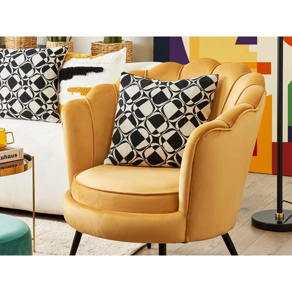 Gestoffeerde retro fauteuil van fluweel in geel. Een perfecte keuze voor iedereen die esthetiek en kwaliteit waardeert! Deze stijlvolle fauteuil heeft een prachtige bekleding van zacht fluweel en geeft elk interieur een elegante touch. Daarnaast zijn de stabiele poten van hoogwaardig metaal – hier vind je simpelweg geen nadelen!