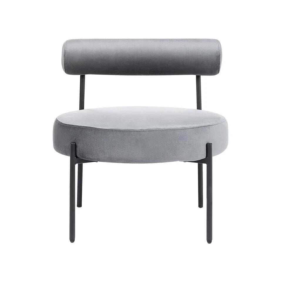 Vintage stijl ronde zetelstoel. Met deze retro geïnspireerde fauteuil zal jouw woonruimte zeker de aandacht trekken en al jouw gasten charmeren. De zetel heeft een uniek ontwerp en een ruime, ronde zitting in combinatie met een rugkussen wat zorgt dat de stoel de perfecte plek is om te ontspannen na een lange dag. Door de slanke, zwarte poten staat de fauteuil stevig en de mooie kleur past goed bij veel verschillende vintage-stijl kamers. Bovendien is de fauteuil bekleed met aangenaam aanvoelend fluweel, dat weinig onderhoud vereist om jarenlang mee te gaan.