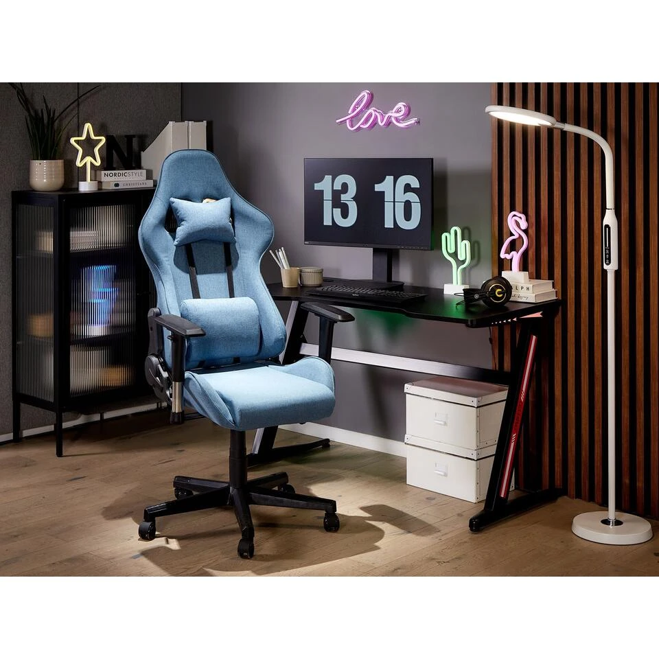 Ergonomische bureaustoel. Creëer de meest gunstige werkomstandigheden of studieomgeving met deze uiterst comfortabele en stijlvolle bureaustoel. Elk element van dit meubelstuk kan worden aangepast aan jouw behoeften, inclusief de hoogte van de zitting, armleuningen en de kanteling van de rugleuning. De zitting van de stoel, gevuld met memory foam, biedt superieur comfort, ondersteuning, en vormt zich naar de contouren van je lichaam door de drukpunten te verlichten. De twee afneembare kussens zorgen voor uitstekende ondersteuning van de onderrug en nek, waardoor je lange uren aan je bureau kunt zitten zonder ongemak of rugpijn.