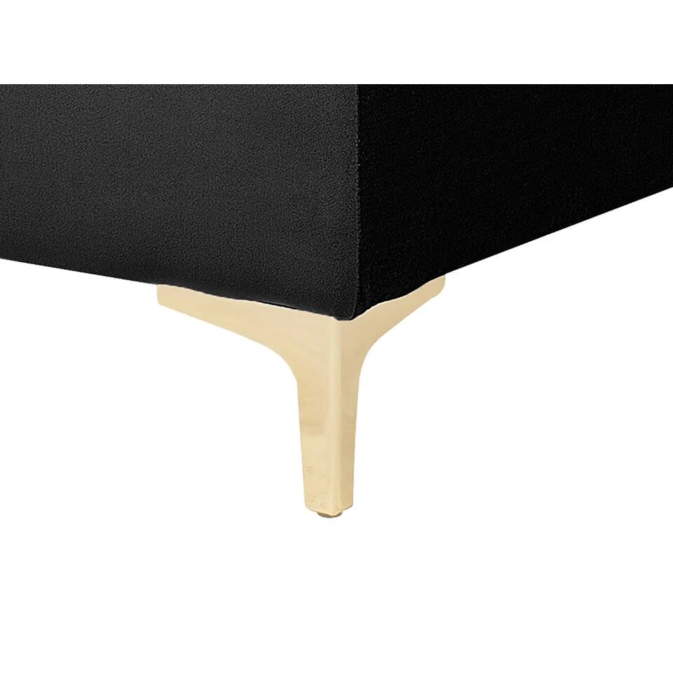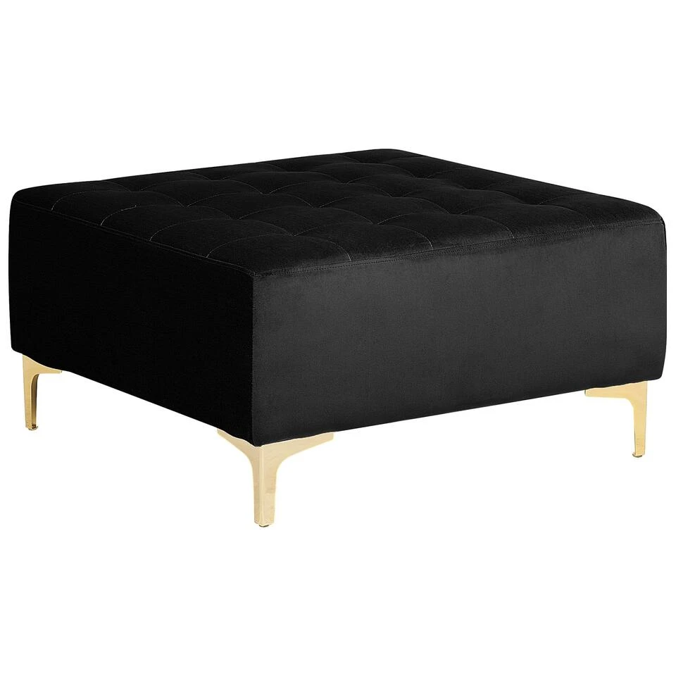 Praktische ottomaan in zwart fluweel. Deze moderne voetenbank is de perfecte aanvulling op een bankstel. Volledig gestoffeerd met hoogwaardige stof en elegante tufting, past hij bij elk interieur. Combineer het met andere stukken uit de collectie om een zitgroep te creëren die bij je past. Het geheel staat stabiel dankzij de metalen poten.