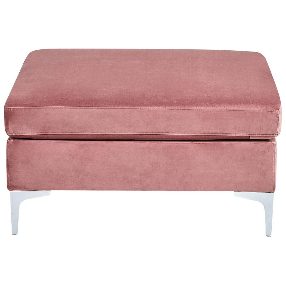 Fluwelen voetenbankje. Deze trendy ottomaan is een perfecte aanvulling voor moderne en glamour woonkamers. De stabiele zitting heeft een houten frame en een dik gewatteerd kussen met daaromheen een heerlijke fluwelen stoffering. Daarnaast heeft het glanzende zilver metalen poten die zorgen voor een strakke moderne look. Mix en match met andere elementen van de collectie en creëer de perfecte zithoek.