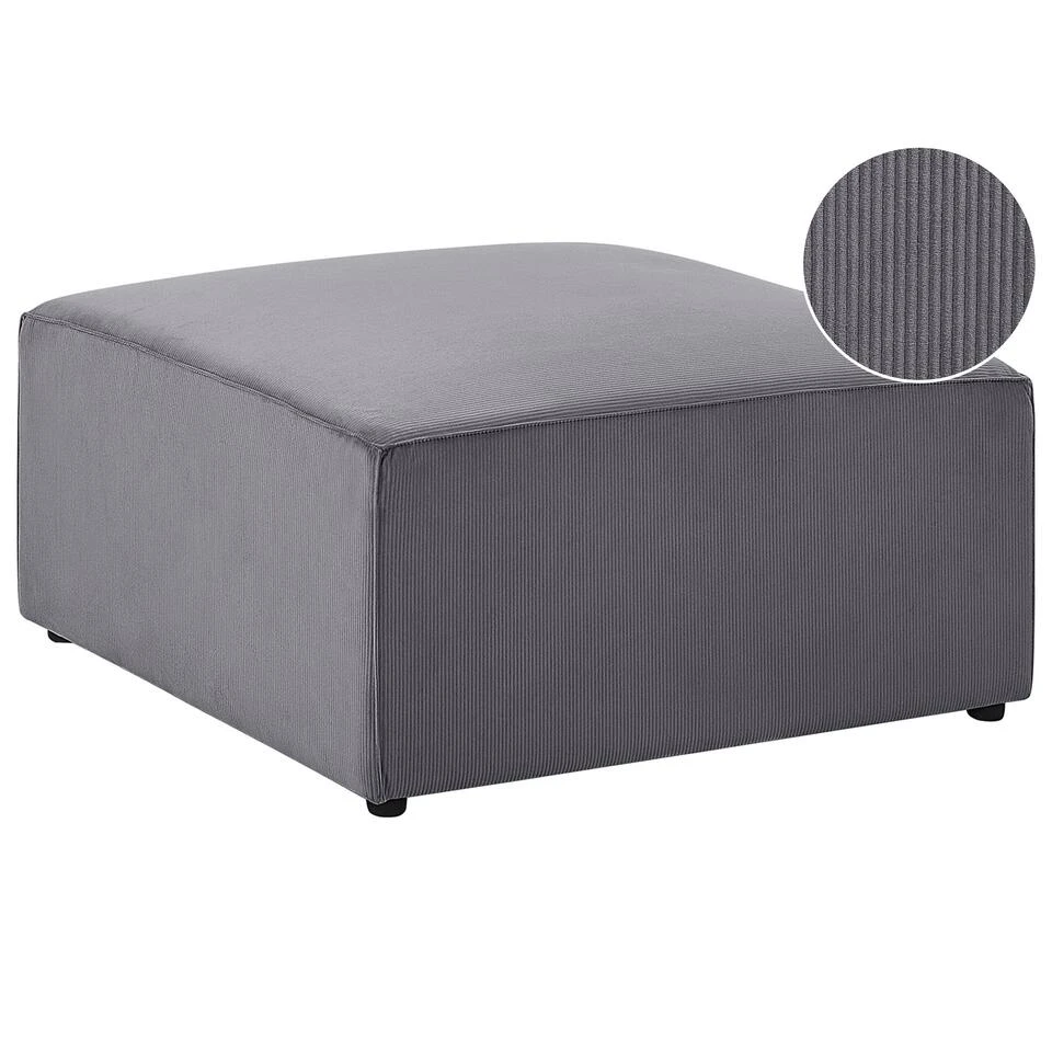 Trendy ottomaan in subtiel grijs ribstof . Maak je woonkamer stijlvol en overzichtelijk met deze moderne ottomaan. De corduroy-bekleding voelt zacht aan en heeft een opvallende geribbelde structuur, wat hem een elegante uitstraling geeft. Combineer dit meubel met andere modulaire stukken uit de collectie om verschillende sofa configuraties te maken.