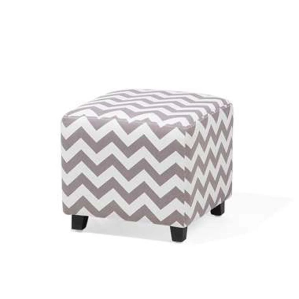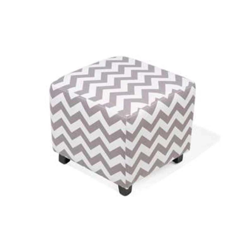 Vierkante hocker met elegant patroon. Deze multifunctionele hocker leent zich uitstekend als plaats om je voeten op te rusten na een lange werkdag. De hocker is gemaakt van katoenen bekleding en gedecoreerd met een chevron patroon in grijs en wit. Daarmee is de hocker een sfeervolle toevoeging aan jouw woon- of slaapkamer. De korte en stevige poten van de hocker zorgen voor een perfecte stabiliteit.