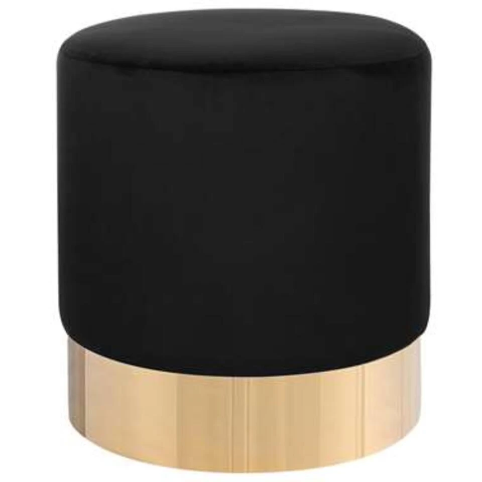Gevoerde fluwelen poef met gouden accent. Voeg een luxe sfeer toe aan je interieur. Deze poef gemaakt van duurzame fluwelen polyesterstof in zwarte kleur voelt heerlijk zacht aan terwijl hij ook duurzaam en slijtvast is. De gouden voet benadrukt het moderne ontwerp en geeft het een glamoureuze uitstraling. Gebruik de poef als extra zitplaats of als voetenbankje en decoreer je ruimte met dit accentstuk.