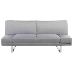 Trendy slaapbank. Een strakke en comfortabele slaapbank is een essentieel onderdeel van je huis, vooral in kleine woonruimtes. Bekleed met hoogwaardig polyester, dat zacht aanvoelt en gemakkelijk te onderhouden is. Het houten frame en de roestvrijstalen poten garanderen de stevigheid van de bank. Dik gevoerde zitting en rugleuning garanderen een uitzonderlijke zitervaring, terwijl de armleuningen plat kunnen worden gelegd of aangepast aan je behoeften. De bank kan dankzij het klik-klak-mechanisme binnen enkele seconden worden omgebouwd tot een compact bed wanneer je een extra slaapplek nodig hebt.