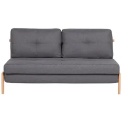 Moderne 2-zits slaapbank in donker-grijs. Deze praktische, moderne bank is een ideale combinatie van stijl en functionaliteit. Compact en eenvoudig in ontwerp met zijn minimalistische uitstraling en dikke, uitnodigende kussens. Het kan heel eenvoudig worden omgezet van een zit-bank in een (logeer)bed. Het meubel is ook nog eens een zeer comfortabele stoel in opgevouwen toestand.
