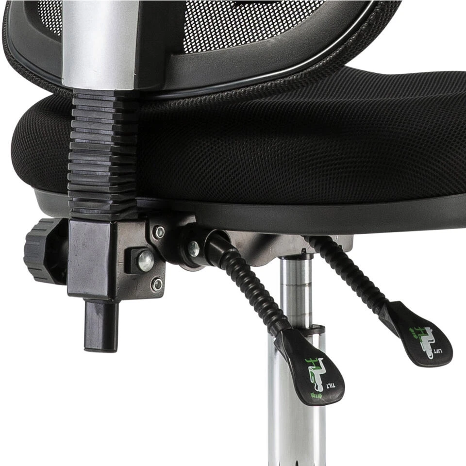 De zitting is traploos in hoogte verstelbaar middels een gasveer. Je kunt die bedienen met de voorste hendel onder de zitting. Daarnaast is de stoel voorzien van een kantelmechanisme om een meer ontspannen houding aan te kunnen nemen. Dit kantelmechanisme wordt bediend met de achterste hendel. De vaste hoofd- en lendensteun geven extra comfort tijdens een lange werkdag. Met deze stoel kun je uren doorbrengen achter je bureau.