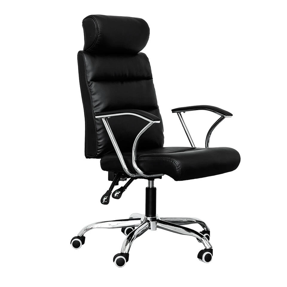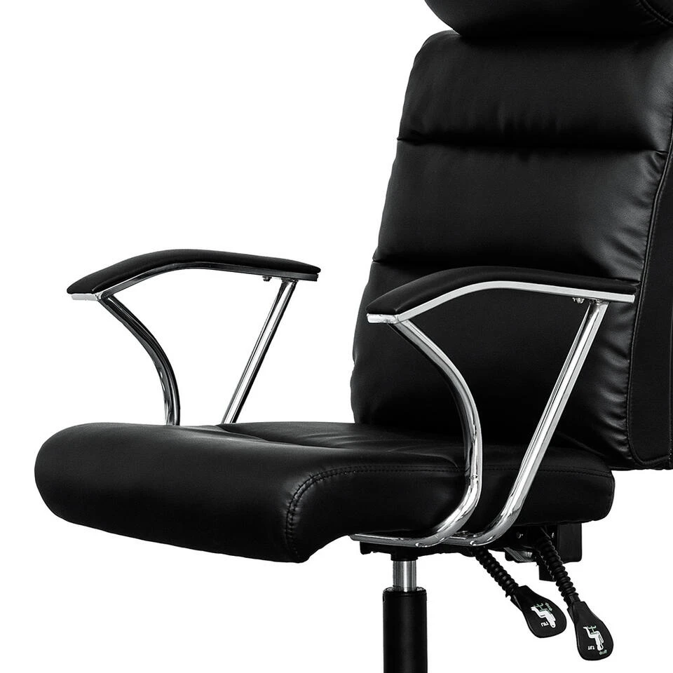 De zitting, rugleuning, hoofdsteun en armleuningen zijn uitgevoerd in PU leder. Daardoor vormt deze stoel een duurzame toepassing voor in huis of op kantoor. PU-leer is een synthetische leersoort die qua uiterlijk nagenoeg niet van echt leer te onderscheiden is. Het is slijtvast, vuilbestendig en kan in verschillende elegante kleuren worden besteld. De armleuningen en stervoet zijn chroomkleurig wat zorgt voor een luxe uitstraling.