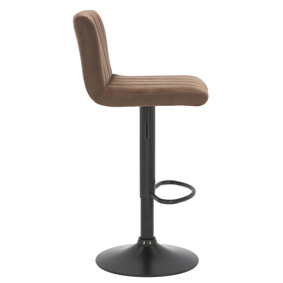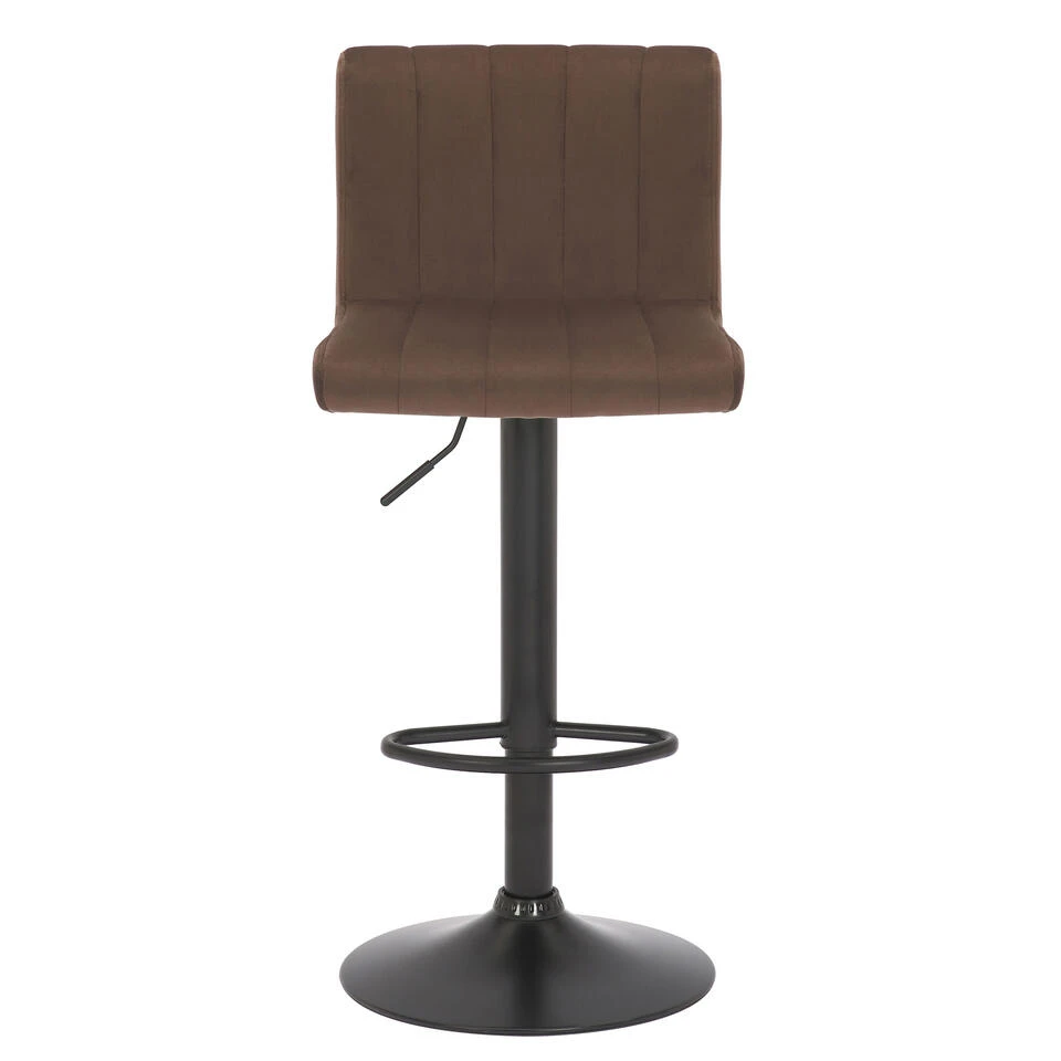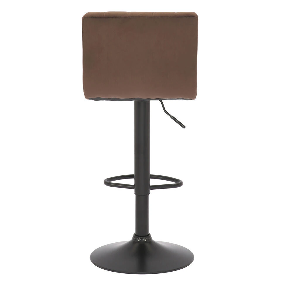 Deze barkruk geeft elke ruimte een exclusieve uitstraling en overtuigt niet alleen door zijn uitstekende zit eigenschappen, maar ook door zijn moderne design. De zitting is bekleed met een gemakkelijk te onderhouden fluwelen hoes. Met behulp van de gasveer kan dit model traploos op de gewenste hoogte worden ingesteld, zodat het ideaal geschikt is voor elke aanrechthoogte. De voetsteun, die voor een zeer goed zitcomfort zorgt, kan synchroon met de hoogte van de zitting worden versteld. De zitting kan samen met de voetsteun 360° gedraaid worden. De trompetvoet van zwart metaal heeft vloerbeschermers aan de onderkant om te voorkomen dat er krassen op oppervlakken komen.