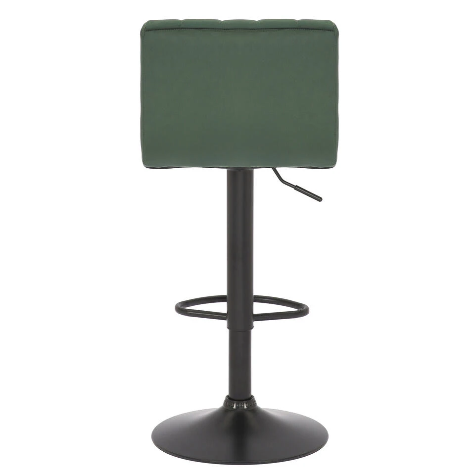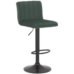 Deze barkruk geeft elke ruimte een exclusieve uitstraling en overtuigt niet alleen door zijn uitstekende zit eigenschappen, maar ook door zijn moderne design. De zitting is bekleed met een gemakkelijk te onderhouden fluwelen hoes. Met behulp van de gasveer kan dit model traploos op de gewenste hoogte worden ingesteld, zodat het ideaal geschikt is voor elke aanrechthoogte. De voetsteun, die voor een zeer goed zitcomfort zorgt, kan synchroon met de hoogte van de zitting worden versteld. De zitting kan samen met de voetsteun 360° gedraaid worden. De trompetvoet van zwart metaal heeft vloerbeschermers aan de onderkant om te voorkomen dat er krassen op oppervlakken komen.