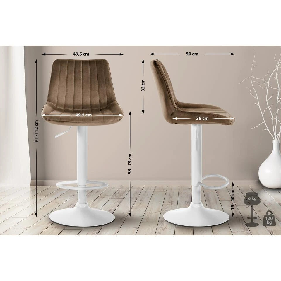 CLP Barkruk Toni Fluweel Wit Frame Bruin