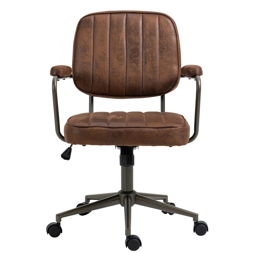 De welgevormde Natrona bureaustoel maakt niet alleen indruk met zijn kenmerkende industriële look, maar als het op comfort aankomt, kan niemand deze bureaustoel voor de gek houden. De slijtvaste kunstlederen bekleding en de hoogwaardige stoffering zorgen voor een aangename zitervaring gedurende meerdere uren. De rugleuning heeft een aangename vorm en de zithoogte van de stoel is traploos instelbaar en garandeert ergonomisch zitten. Bovendien is de bureaustoel uitgerust met een schommelmechanisme dat voor meer bewegingsvrijheid zorgt. De stabiliteit wordt verzekerd door het metalen frame in zwart. Met de vijf soepel lopende zwenkwielen kunt u gemakkelijk en losjes over de vloer rollen – of het nu gaat om harde vloeren of tapijt.