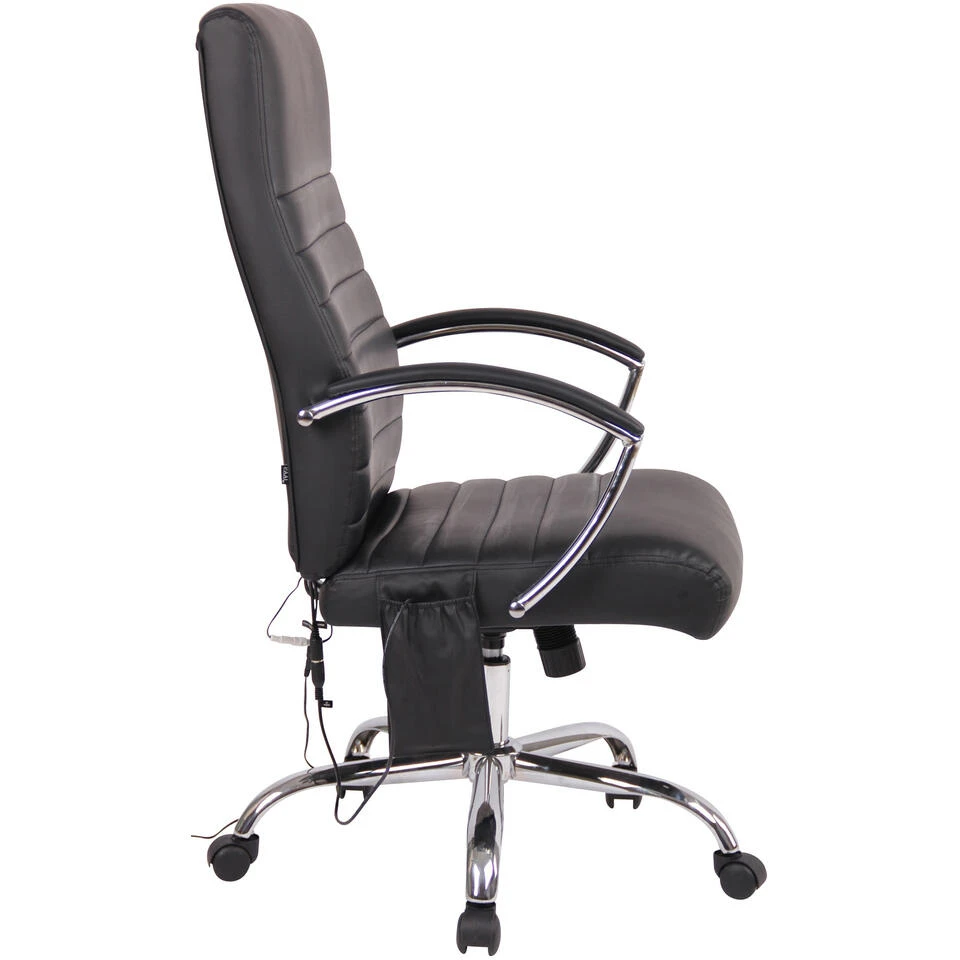 Deze bureaustoel Valais overtuigt niet alleen met zijn edele uitstraling, maar ook in termen van comfort en veerkracht kan niemand hem voor de gek houden. De goede stoffering en de onderhoudsvriendelijke kunstlederen bekleding met stijlvolle siernaden zorgen voor een aangenaam zitgevoel, ook bij langdurig gebruik van de stoel. Dankzij de traploos instelbare zithoogte garandeert de bureaustoel ergonomisch zitten te allen tijde. Bovendien biedt het ingebouwde kantelmechanisme meer bewegingsvrijheid. Hij staat stevig op vijf soepel lopende wielen en een chroomlook metalen frame.