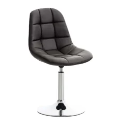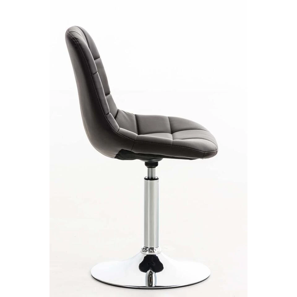 De eetkamerstoel Emil maakt indruk met zijn comfortabele bekleding en een slank, afgerond uiterlijk. Rechthoekige decoratieve stiksels en heldere kleuren maken het een visueel hoogtepunt. De zit is bedekt met een kunstlederen bekleding die een ergonomische zitplaats garandeert. Hij staat stabiel op een metalen trompetvoet in chroomlook en kan 360 ° worden gedraaid.