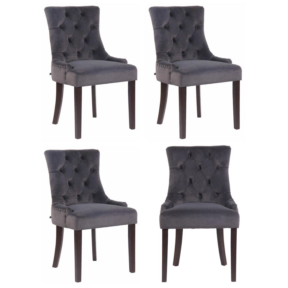 Uw ambiance wordt stijlvol verlevendigd met de Aberdeen fluwelen eetkamerstoel set van 4. De beklede stoelen zijn bekleed met fluweel en voorzien van mooie sierstiksels en knopen. Dit maakt deze set tot een smaakvolle aanwinst voor de eetkamer, keuken en andere woonruimtes. Elke stoel staat op een onderstel van rubberhout en geeft een gezellige sfeer.