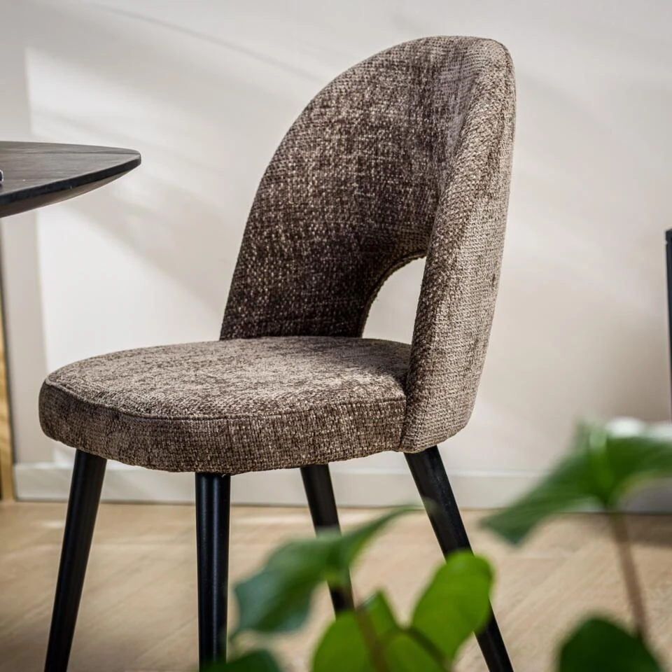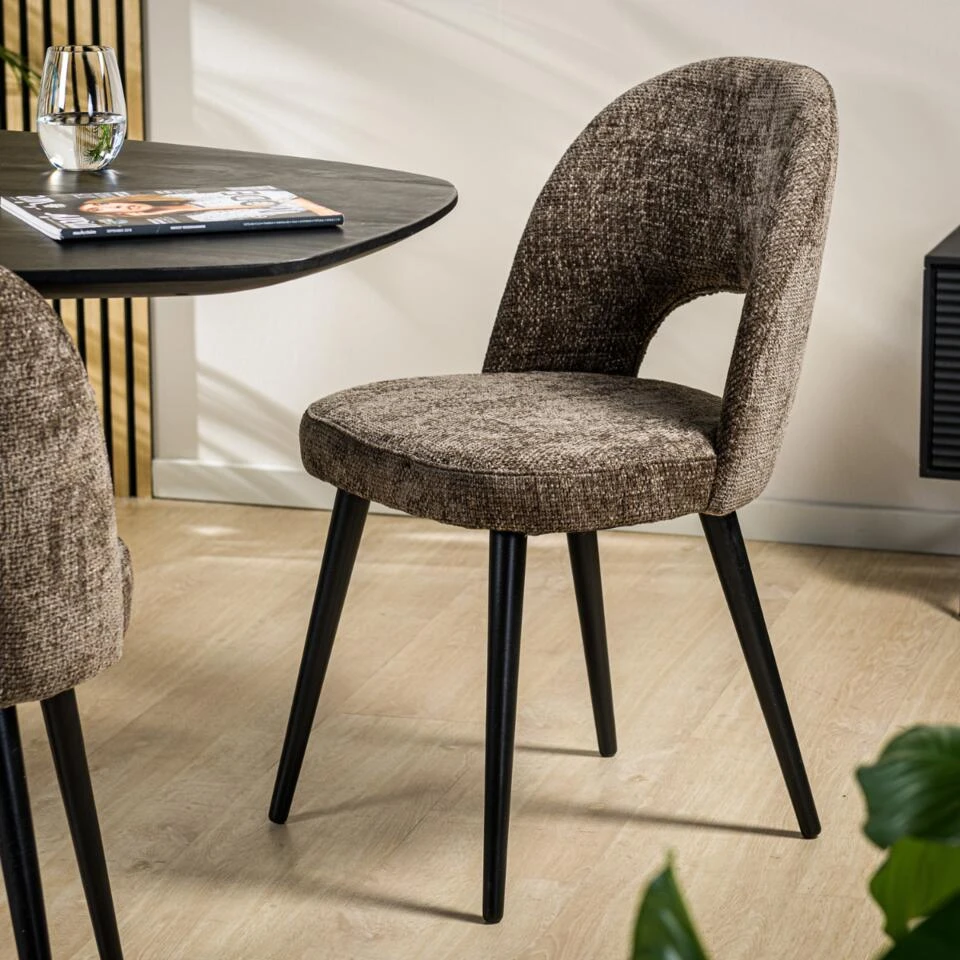 Devin eetkamerstoel is een prachtige toevoeging aan elke eetkamer. Met zijn volledige bekleding van hoogwaardige stof voelt deze stoel heerlijk aan. De zwarte poten van de stoel matchen mooi met de natuurlijke kleur van de bekleding, wat zorgt voor een elegante combinatie. De rugleuning van de Devin eetkamerstoel heeft een mooie ronde afwerking, ook zit er een opening in de achterkant van de rugleuning wat het een slank uiterlijk creëert. Maar het is niet alleen het uiterlijk dat telt, door de goede opvulling van de stoel, de zachte stof en de goed gevormde rugleuning zit de stoel ook nog eens geweldig comfortabel. Het moderne ontwerp van de Devin eetkamerstoel maakt hem een perfecte aanvulling op elk interieur. De stoel is onderdeel van het woonmerk Vurna. Devin is verkrijgbaar in teddy stof antraciet of naturel en stof naturel of bruin. Koop hem per set van twee stuks. De prijs wordt altijd weergegeven per stuk.