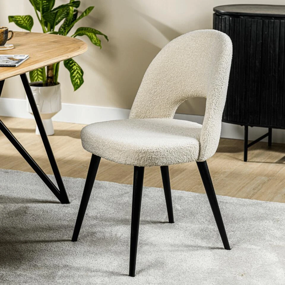 Devin eetkamerstoel is een prachtige toevoeging aan elke eetkamer. Met zijn volledige bekleding van hoogwaardige stof voelt deze stoel heerlijk aan. De zwarte poten van de stoel matchen mooi met de natuurlijke kleur van de bekleding, wat zorgt voor een elegante combinatie. De rugleuning van de Devin eetkamerstoel heeft een mooie ronde afwerking, ook zit er een opening in de achterkant van de rugleuning wat het een slank uiterlijk creëert. Maar het is niet alleen het uiterlijk dat telt, door de goede opvulling van de stoel, de zachte stof en de goed gevormde rugleuning zit de stoel ook nog eens geweldig comfortabel. Het moderne ontwerp van de Devin eetkamerstoel maakt hem een perfecte aanvulling op elk interieur. De stoel is onderdeel van het woonmerk Vurna. Devin is verkrijgbaar in teddy stof antraciet of naturel en stof naturel of bruin. Koop hem per set van twee stuks. De prijs wordt altijd weergegeven per stuk.