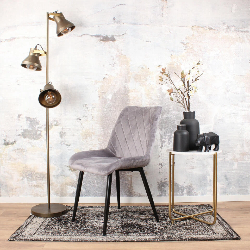 De Benito 2.0 eetkamerstoel is een prettige en hippe stoel. De bovenkant is mooi gestikt met een ruitmotief. Deze industriële eetkamerstoel heeft een gepoedercoat metalen onderstel in de kleur zwart. De gestoffeerde zitting is uitgevoerd in velours stof en verkrijgbaar in vier mooie kleuren: grijs, donkergroen, zalmroze en petrol blauw. Neem contact met ons op en kom de stoel bij ons in de winkel bekijken en testen! Deze uitzonderlijke prijsstelling wordt mede bewerkstelligd doordat deze lichting als partij is ingekocht, dit betekent OP=OP