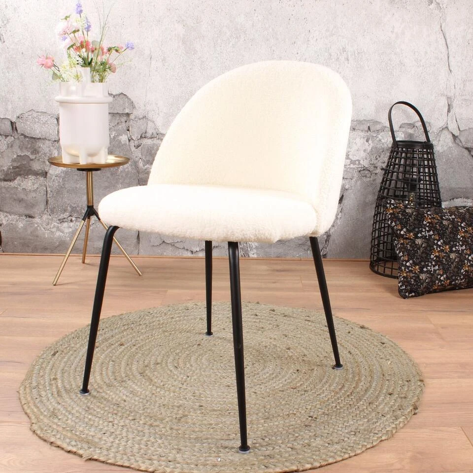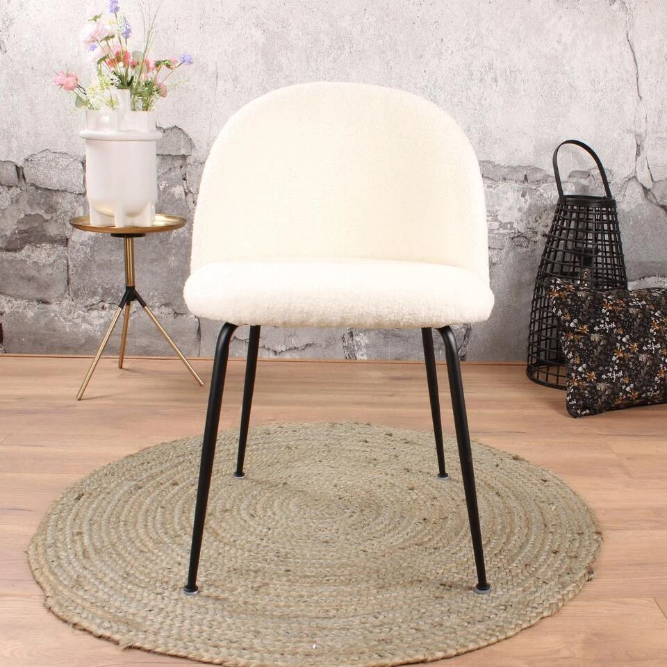 Luuk eetkamerstoel teddy heeft een tijdloos, strak en mooi design. De zitting is volledig bekleed met een zachte teddy stof. Zo voelt deze eetkamerstoel heerlijk aan en is hij helemaal van deze tijd. Luuk is verkrijgbaar in drie populaire kleuren; wit, grijs en lichtbruin. Dit zorgt voor een chique uitstraling. De kuip is bevestigd op een stevig onderstel van zwart metaal. Luuk is door deze combinatie ook uitermate geschikt voor op kantoor of in een hippe horecagelegenheid. Combineer de diverse kleuren voor een speels en persoonlijk effect of creëer rust en eenheid binnen het interieur door te gaan voor jouw favoriete kleur. De zachte, aaibare stof combineert perfect met materialen vol texturen, zoals verschillende houtsoorten en rotan. Ook bij een Scandinavisch interieur misstaat het stofje niet.