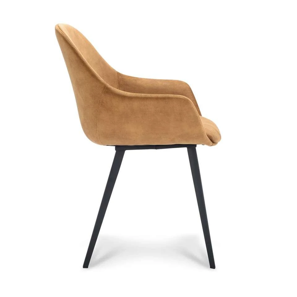 Eetkamerstoel Cody is bekleed met een hippe trendy velourse stof Adore in de kleur cognac. De eetkamerstoel heeft naast zijn strak design een fijn zitcomfort. Zijn zwarte elegante poten maken het geheel af. Eetkamerstoel Cody is per twee stuks verpakt en is verkrijgbaar in meerdere velvet kleuren.