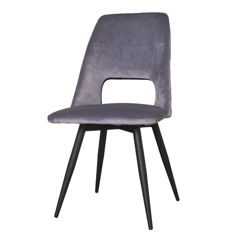 De draaibare eetkamerstoel is bekleed met velvet. Fluweel is een stofsoort ontstaan in Azië en dat rond 1400 is overgewaaid naar Europa. Bij fluweel worden er kleine lusjes geweven. Hierdoor ontstaat er aan de bovenkant een zachte, glanzende stof.