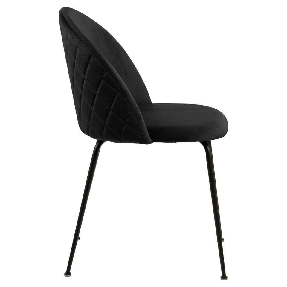 Eetkamerstoel Lenna is een eenvoudig, maar zeer stijlvol kuipstoeltje met een moderne look. Het kuipje is bekleed met zacht fluweel in de kleur zwart. De rugleuning is doorgestikt in een strak ruitjes patroon. Een stoeltje met karakter!