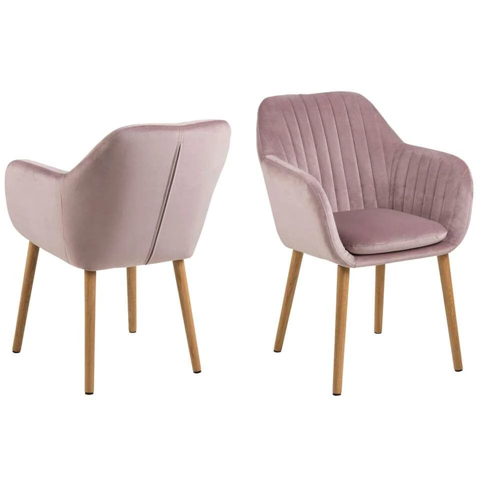 Eetkamerstoel Meda is een stoeltje met elegante houten pootjes en een zitting bekleed met zacht fluweel in de kleur oudroze. De zachte bekleding zorgt voor een optimaal zitcomfort. De rugleuning is gebogen en dat geeft een prettige ondersteuning. Houd je van gezellig urenlang tafelen? Het kan met deze stoelen!