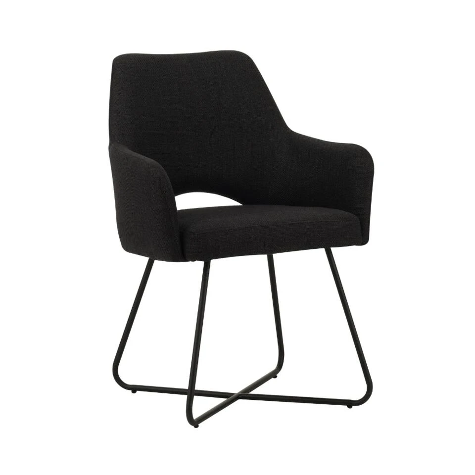 Eetkamerstoel Suzy met armleuningen is een echte toevoeging aan je interieur. Een mooie, tijdloze stoel om in huis te hebben en past in vrijwel ieder interieur. De stoel is stijlvol, stevig en comfortabel vanwege het stevige zwart metalen frame en de heerlijke zachte zitting met armleuningen. De mooie zachte, stevige stof zorgt voor een moderne en elegante uitstraling. Door het tijdloze ontwerp en de hoogwaardige afwerking is deze stoel een must voor jouw eetkamer. Suzy past moeiteloos bij verschillende interieurstijlen, van modern tot Scandinavisch. Bovendien is eetkamerstoel Suzy verkrijg in verschillende kleuren, zodat je de perfecte match kun vinden voor jouw persoonlijke smaak en inrichting. Mix & Match de kleuren met elkaar voor een speelse touch aan jouw interieur. Suzy is de perfecte stoel om een hele avond op te zitten tijdens een gezellig diner met familie of vrienden.