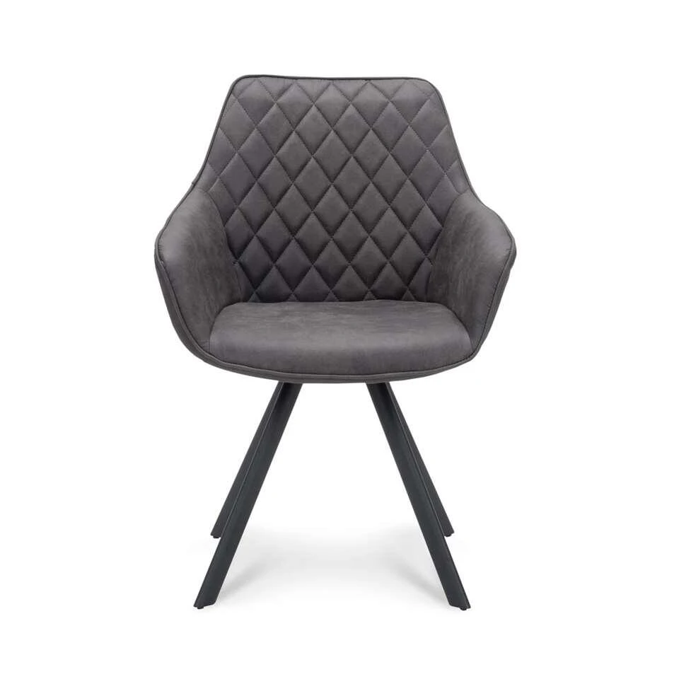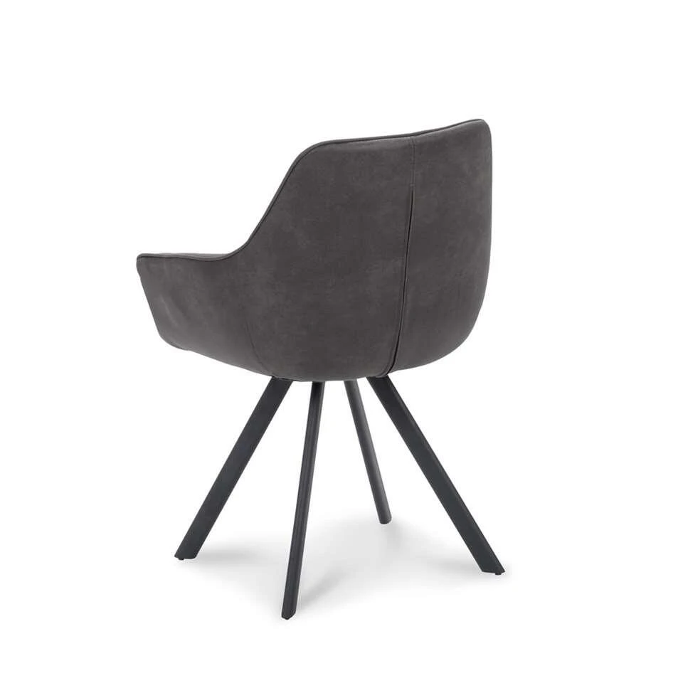Eetkamerstoel Riley is bekleed met een stoere eigentijdse microvezel in het donker grijs. De eetkamerstoel heeft een industriële look met een hoog zitcomfort. Ben je op zoek naar een industriële eigentijdse armstoel? Dan is model Riley de eetkamerstoel voor jou. Door de donkere metalen poten krijgt model Riley een erg stoere look en is hij passend in vele interieurs. De rug van model Riley is uitgevoerd met een geruit stiksel wat hem dan ook helemaal van deze tijd maakt.