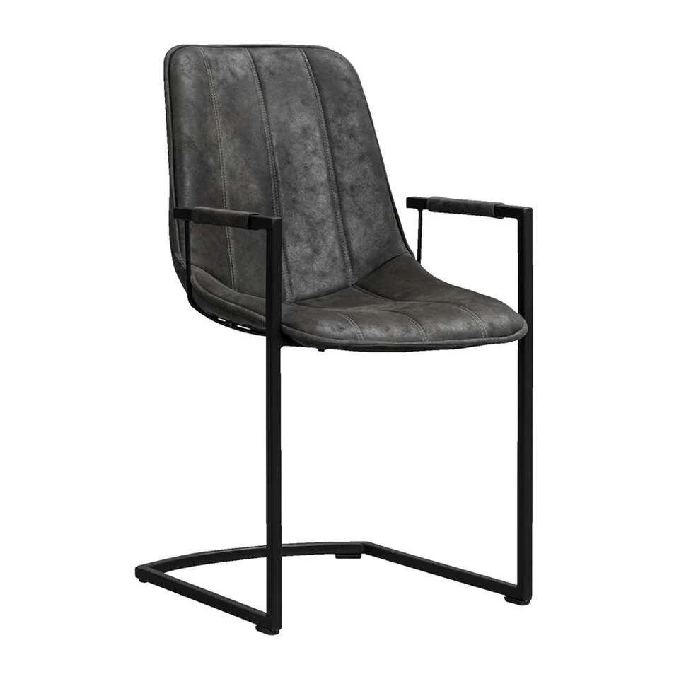 Eetkamerstoel Riv is een hip, stoer stoeltje bekleed met stof. De stoel is uitgevoerd in de kleur antraciet: een stijlvolle kleur die past in ieder interieur. Het stoeltje is mooi afgewerkt en het strakke frame geeft de stoel echt uitstraling. De armleuningen geven de stoel extra comfort. De stoel heeft een totale afmeting van 91x51x62 cm.