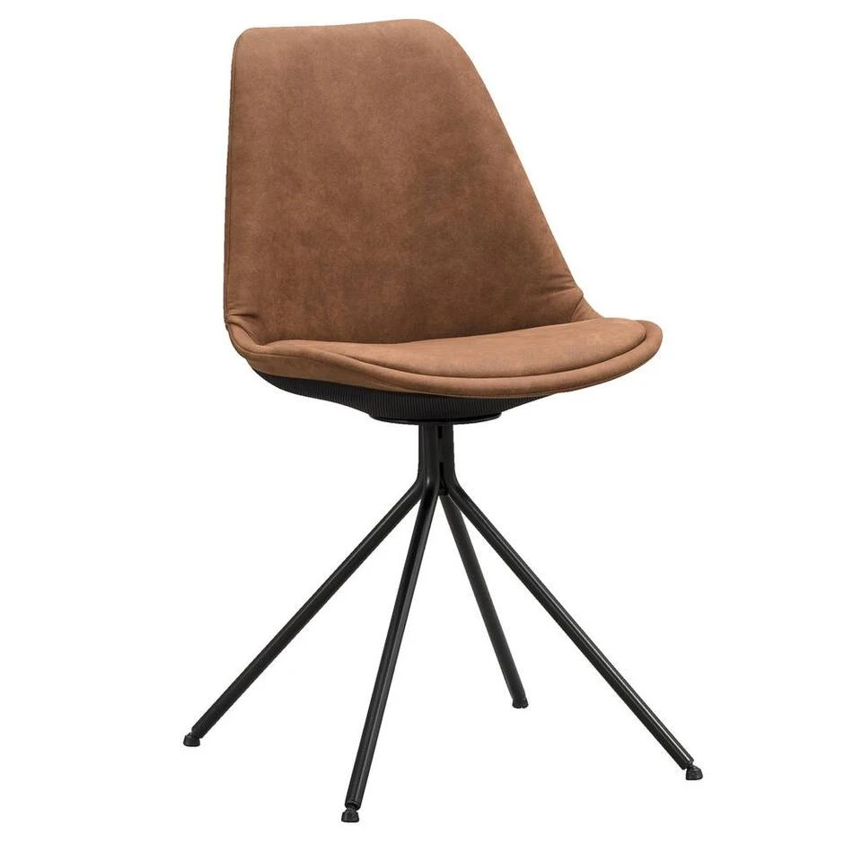 Eetkamerstoel Senja is bekleed met stof in de kleur cognac en heeft een onderstel van zwart metaal. Eetkamerstoel Senja heeft een moderne look. Deze trendy kuipstoel wordt gekenmerkt door eenvoudige maar praktische vormgeving. Deze kuipstoel heeft alles wat je van een modern stoeltje mag verwachten. Stevige metalen poten met een industriële look en een kuipje met een fijn zitcomfort.