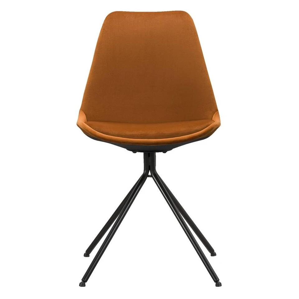 Eetkamerstoel Senja heeft een velvet bekleding in een terra kleur en heeft een onderstel van zwart metaal. Eetkamerstoel Senja heeft een moderne look. Deze trendy kuipstoel wordt gekenmerkt door eenvoudige maar praktische vormgeving. Deze kuipstoel heeft alles wat je van een modern stoeltje mag verwachten. Stevige metalen poten met een industriële look en een velvet kuipje met een fijn zitcomfort.