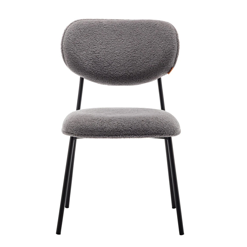 - Luxueuze eetkamerstoel Amalia met zachte teddy stof bekleding en stevige metalen poten