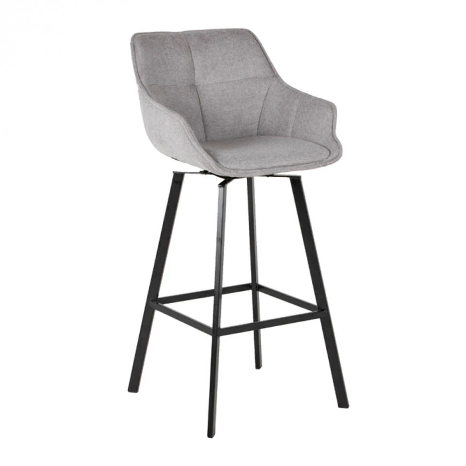 Met de barkruk Shannon zit je altijd comfortabel. De rug- en armleuningen van de barkruk zijn bekleed met stof. Stof is de trend van dit moment. De poot is gemaakt van staal met zwarte poedercoating. De barkruk is erg leuk in een industrieel, modern of urban chique interieur. En het leuke is deze barkruk is ook nog draaibaar.