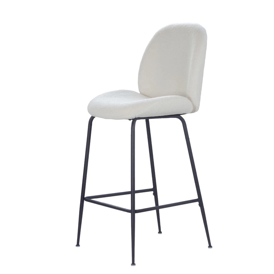 Giga Meubel Barkruk Teddy Wit – Zithoogte 75cm – Zwart Onderstel