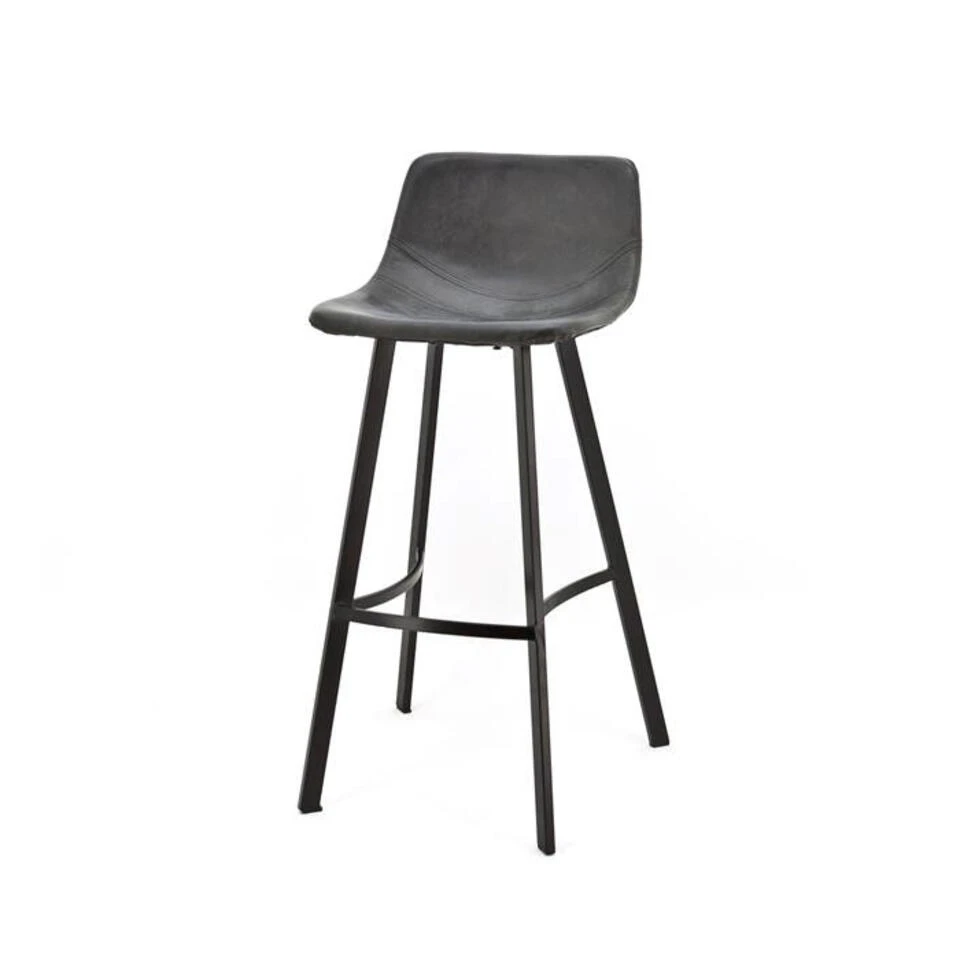 Deze stoere barkruk is een echte eyecatcher in huis en staat mooi bij een donkere of houten bartafel. Het stalen frame is een goede combinatie met het robuuste kunstleer, wat zorgt voor een stoere vintage look.