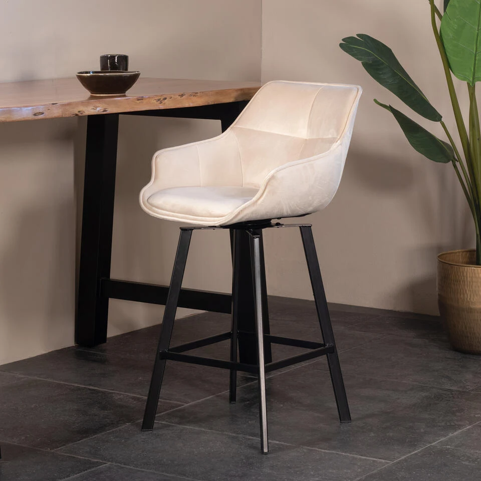 Giga Meubel Barstoel Velvet Champagne – Draaibaar – Stoel Shannon
