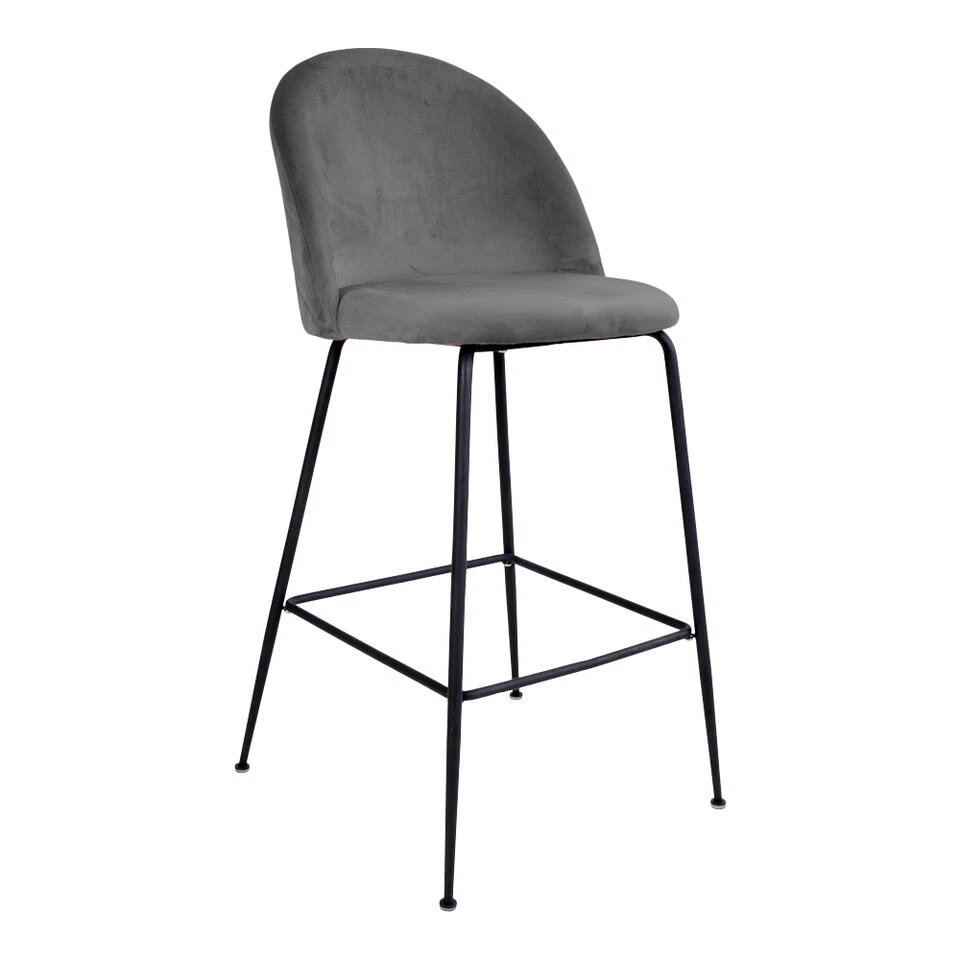 Giga Meubel Barstoel Velvet Grijs/Zwart – Zithoogte 77cm
