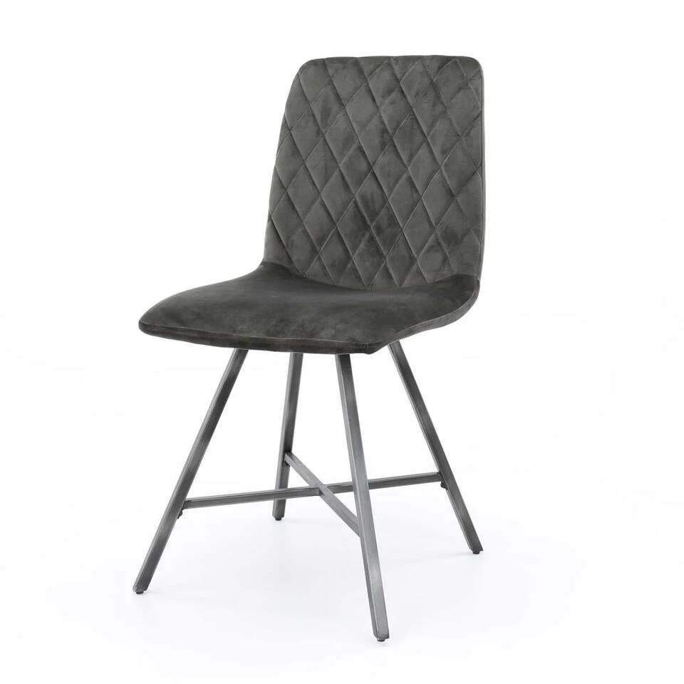 Deze eetkamerstoel is een echte must have! De kuip is afgewerkt in een velvet stof met een diamondstiksel. Het kruisframe is uitgevoerd in een vintage staal, waardoor het een stoer karakter krijgt. De stoel is in twee varianten verkrijgbaar.
