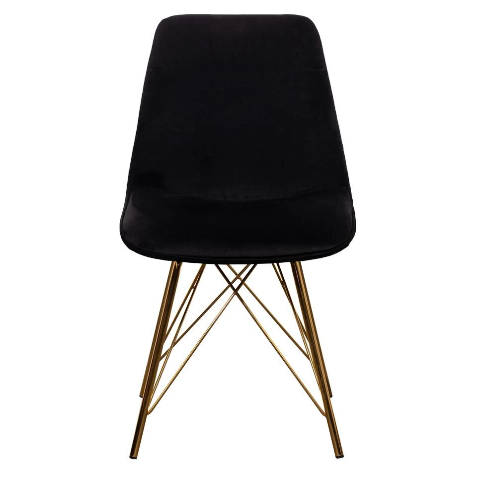 Giga Meubel Eetkamerstoel Velvet Zwart – Set Van 2 – Goud Onderstel