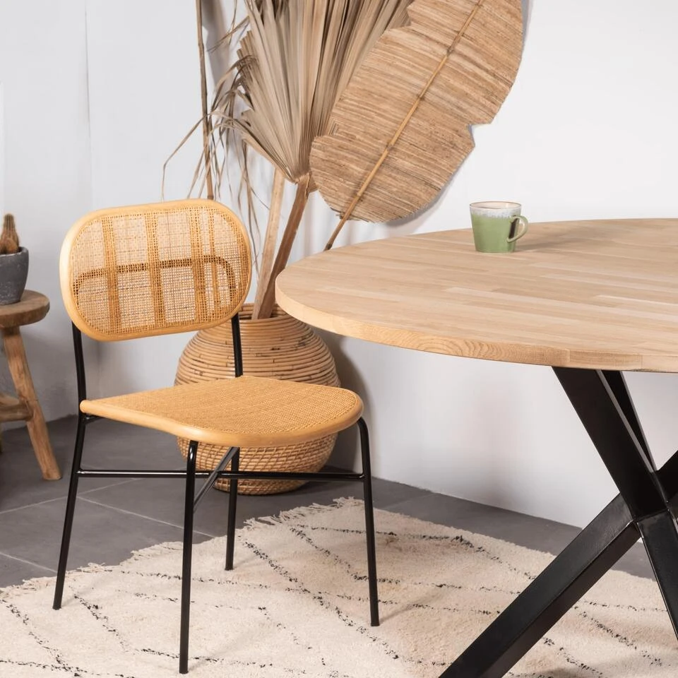 Giga Meubel Eetkamerstoel Webbing Naturel – Metalen Onderstel – Bohemian Stijl