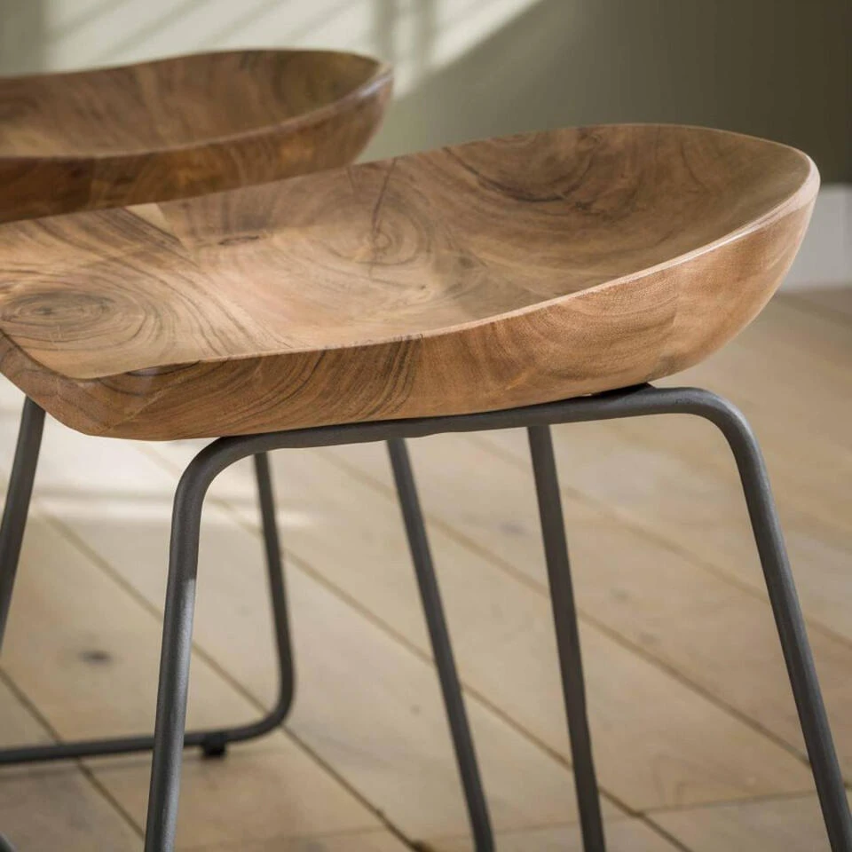 Giga Meubel Houten Krukje – Acaciahout – Naturel – Metalen Frame
