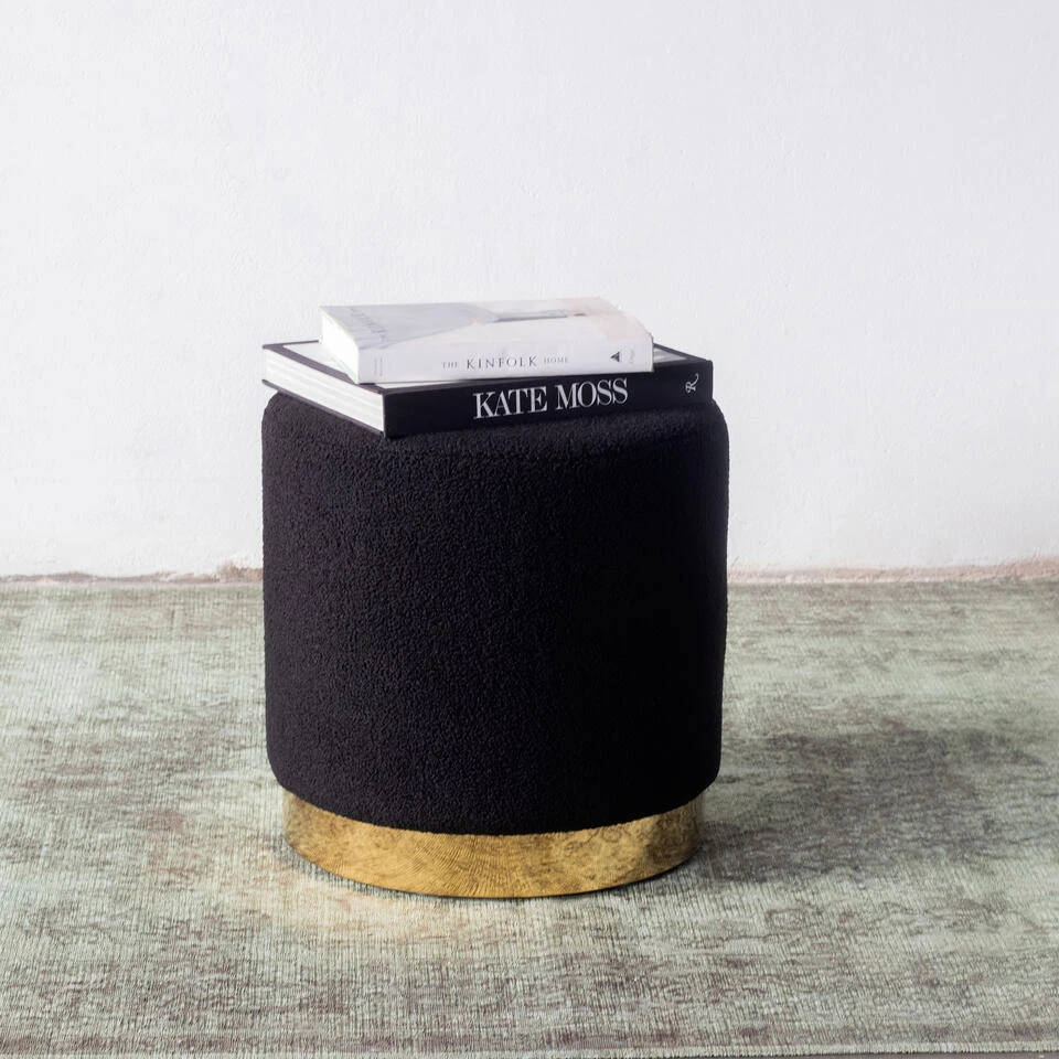 Giga Meubel Teddy Poef Zwart – Met Gouden Onderstel – Poef Quinty