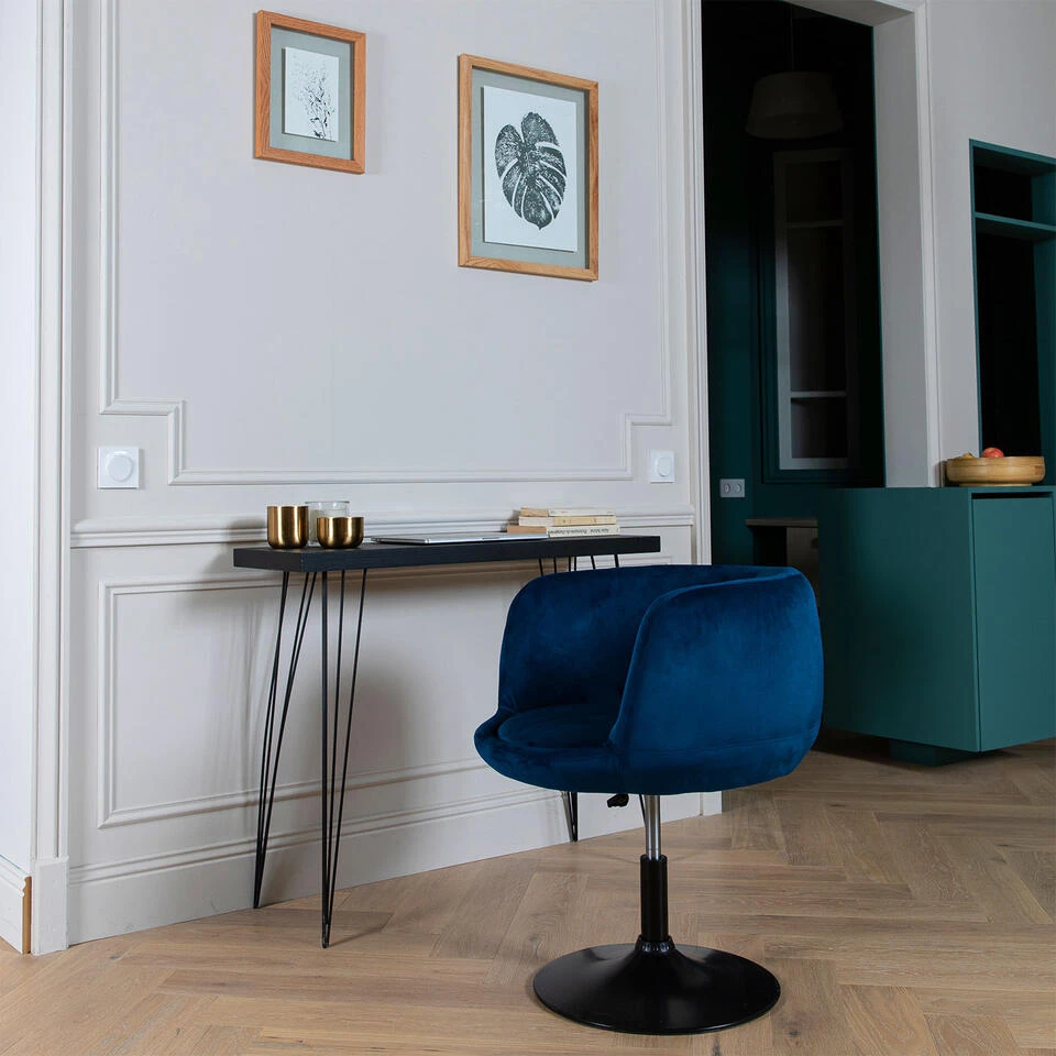 Deze barkruk zal goed staan in een eetkamer, een bar of in de keuken, dankzij de fluwelen bekleding en de afgeronde vorm. Hij kan worden geplaatst in een eetkamer, in een barruimte of in de keuken. Hij is geschikt voor alle tafelhoogten en geeft stijl aan elke kamer van het huis. De rugleuning heeft armleuningen en de zitting heeft een schuimkussen. U zult in alle rust kunnen genieten van gezellige momenten met uw gasten, van uw maaltijden of van uw drankjes. De NOLAN-barkruk is ook 360° draaibaar.