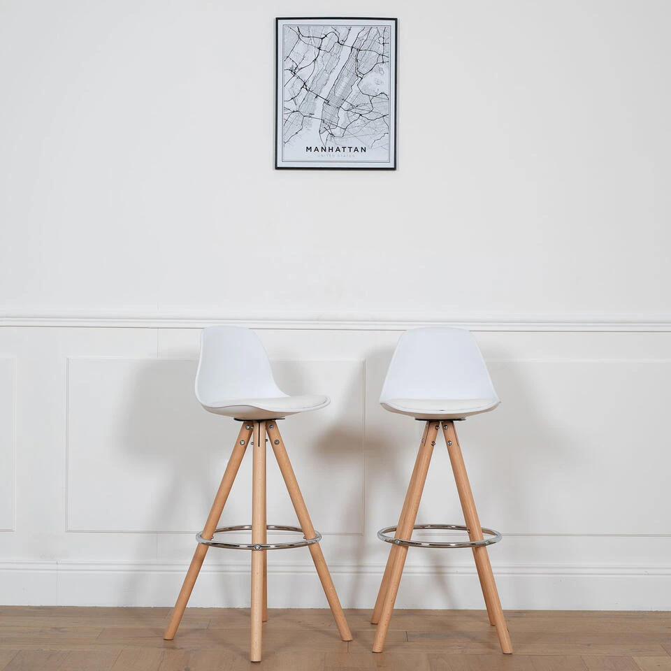 Ontdek onze set barkrukken in Scandinavische stijl om uw kamer in te richten en gemakkelijk een aanrecht of een eettafel in te richten. Het TOBIAS-model past in alle interieurstijlen dankzij zijn zuivere en minimalistische lijnen. U kunt het gemakkelijk afstemmen op uw meubilair en zo de decoratie van een eetkamer of een keuken vernieuwen. Hij heeft een hoge rugleuning en een zitting met een gewatteerd kussen om uw comfort tijdens het eten te optimaliseren. Drie natuurlijk ogende houten poten vormen het bovenblad van deze kinderstoel, met een extra ronde voetsteun ter ondersteuning. Deze barkruk is zowel functioneel als stijlvol!