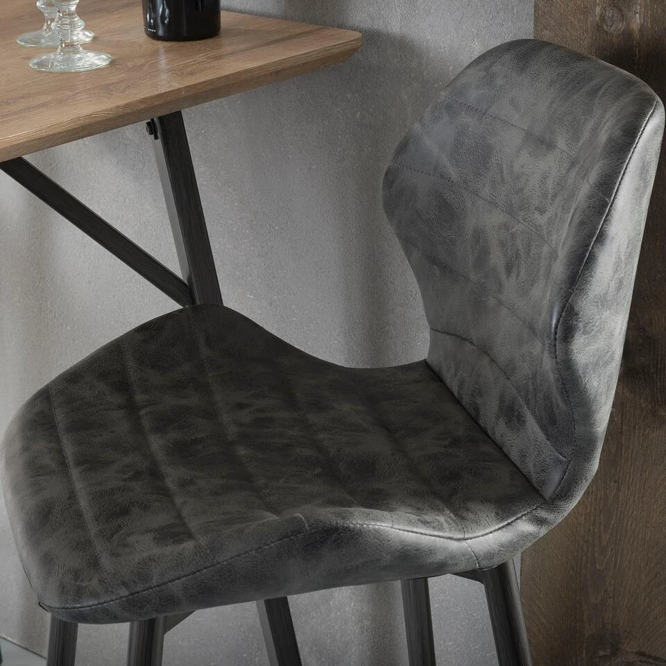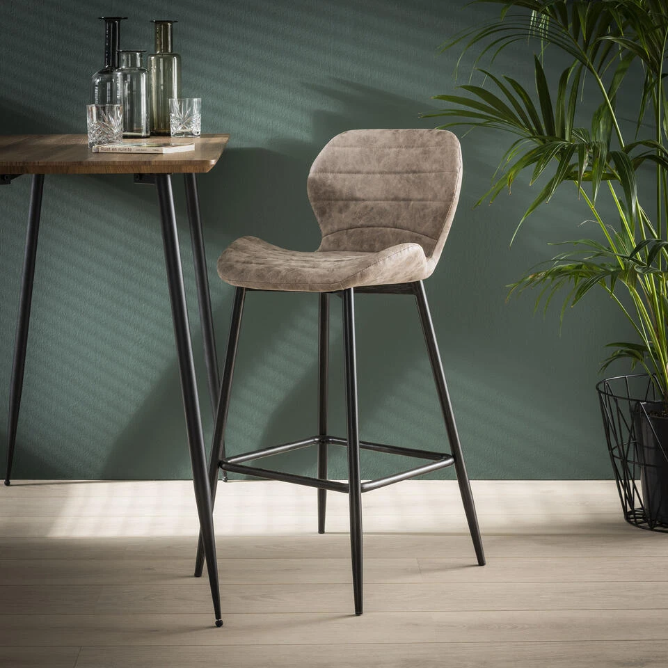 Deze barstoel is voorzien van een vlinderkuip in gewaxt PU leder. Dit houdt in dat de kuip een stoere oneffen lederlook heeft. De rugleuning en de zitting zijn beide aan de voorzijde mooi afgewerkt met horizontale stiknaden. De vier poten zijn uitgevoerd in vintage staal. De stoel heeft een robuste look die ervoor zorgt dat het een echte eye-cathcer is. Door de speciale vorm van de zitting heeft de barstoel extra veel zitcomfort.