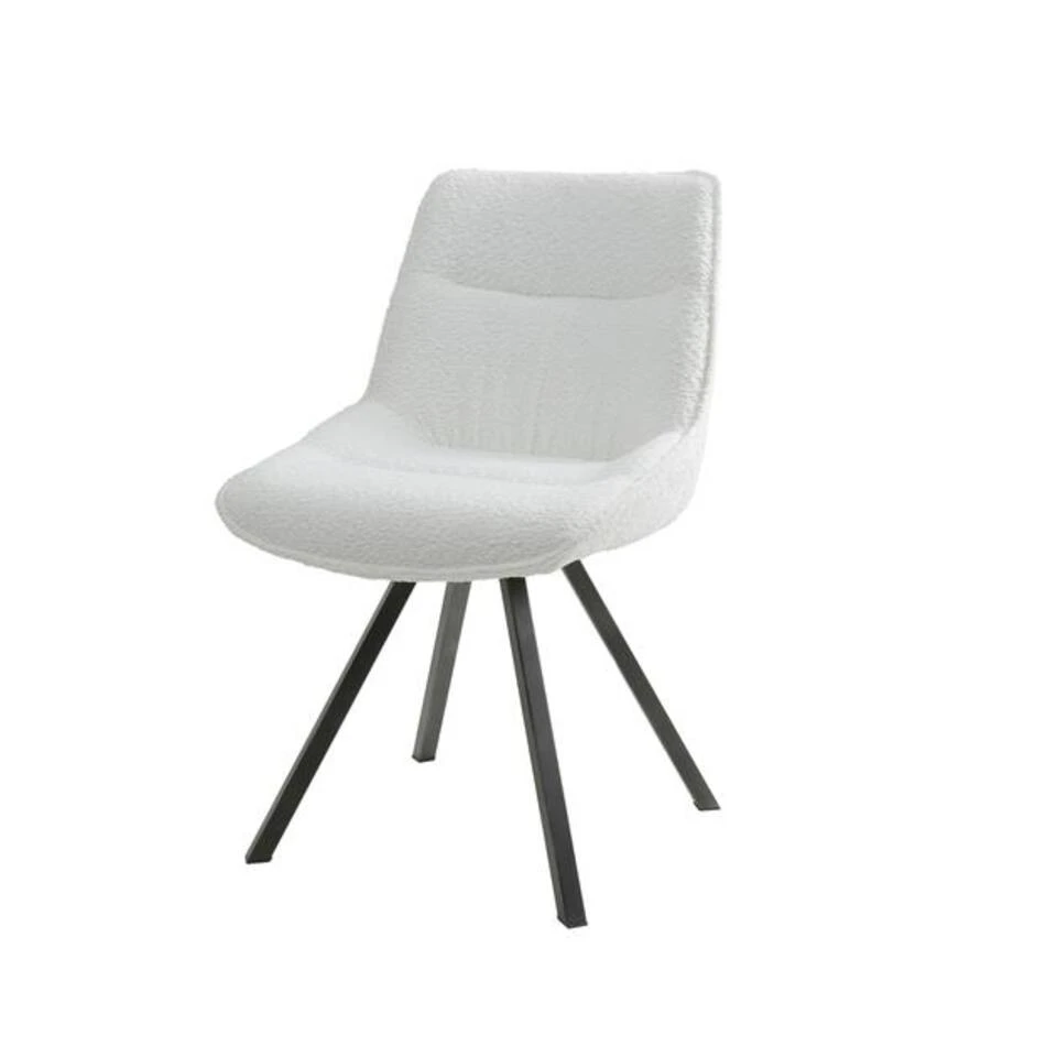 Deze eigentijdse eetkamerstoel is uitgevoerd in bouclé met een metalen frame. De stoel heeft een zeer comfortabele zit. De stoel heeft een bijpassende eetkamerbank. De stoel wordt verpakt per 2 stuks.