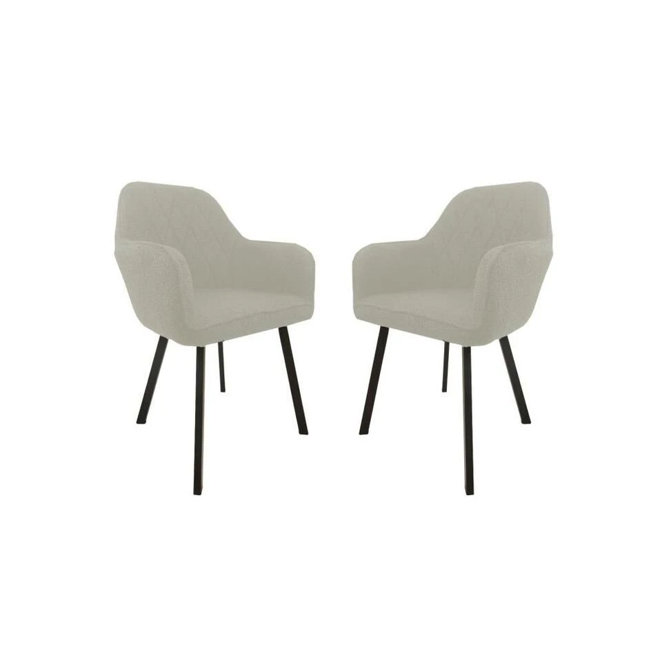 HSM Collection Eetkamerstoel Demi Creme/Zwart Teddy/Metaal Set Van 2