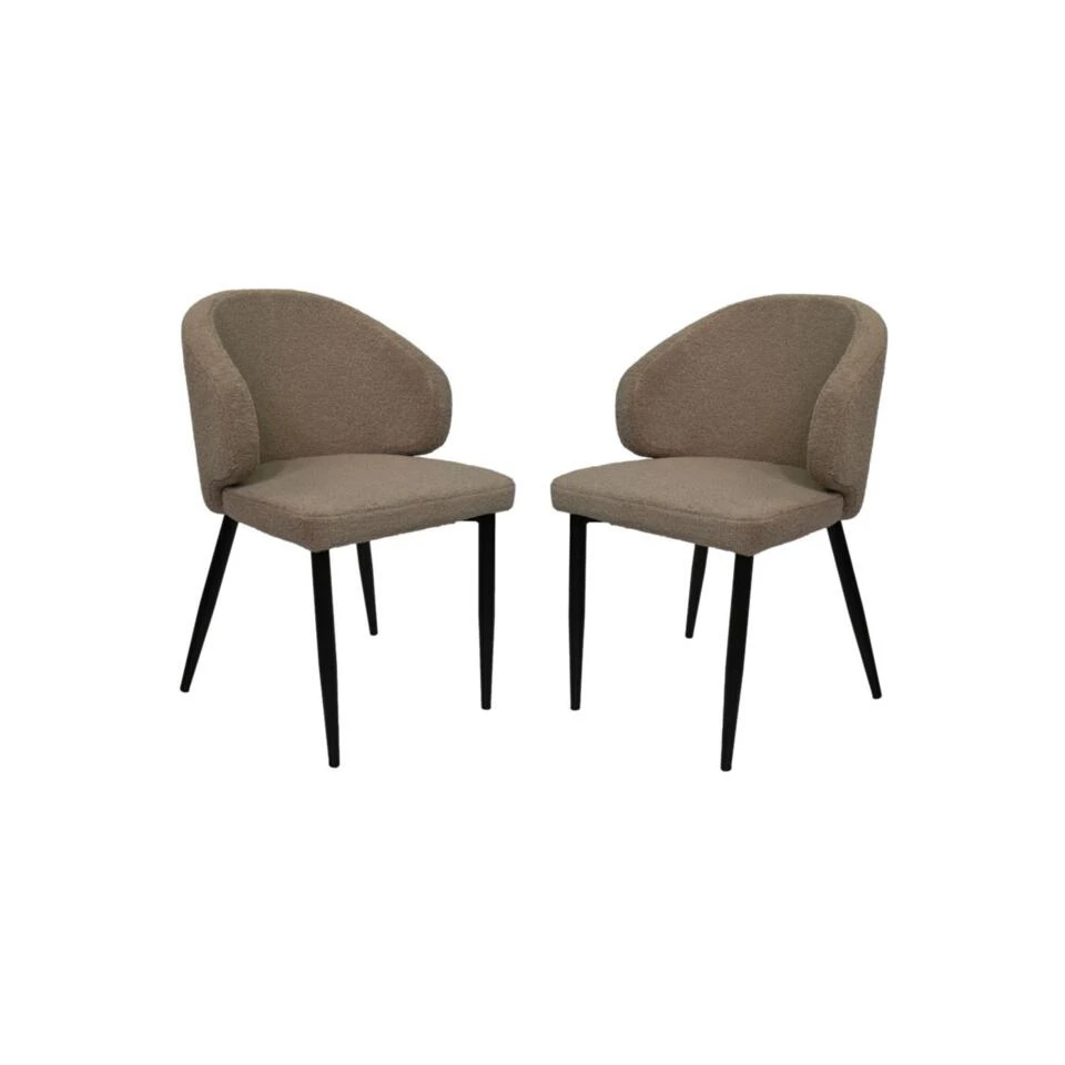 HSM Collection Eetkamerstoel Yuna Taupe Teddy/Metaal Set Van 2